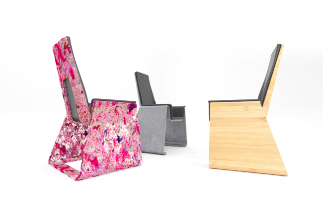 An emphasis on renewable or recycled materials has been selected. Traditional leather or plant-based leather can be chosen for the cushion, which is used only where a person comes into contact with the chair.