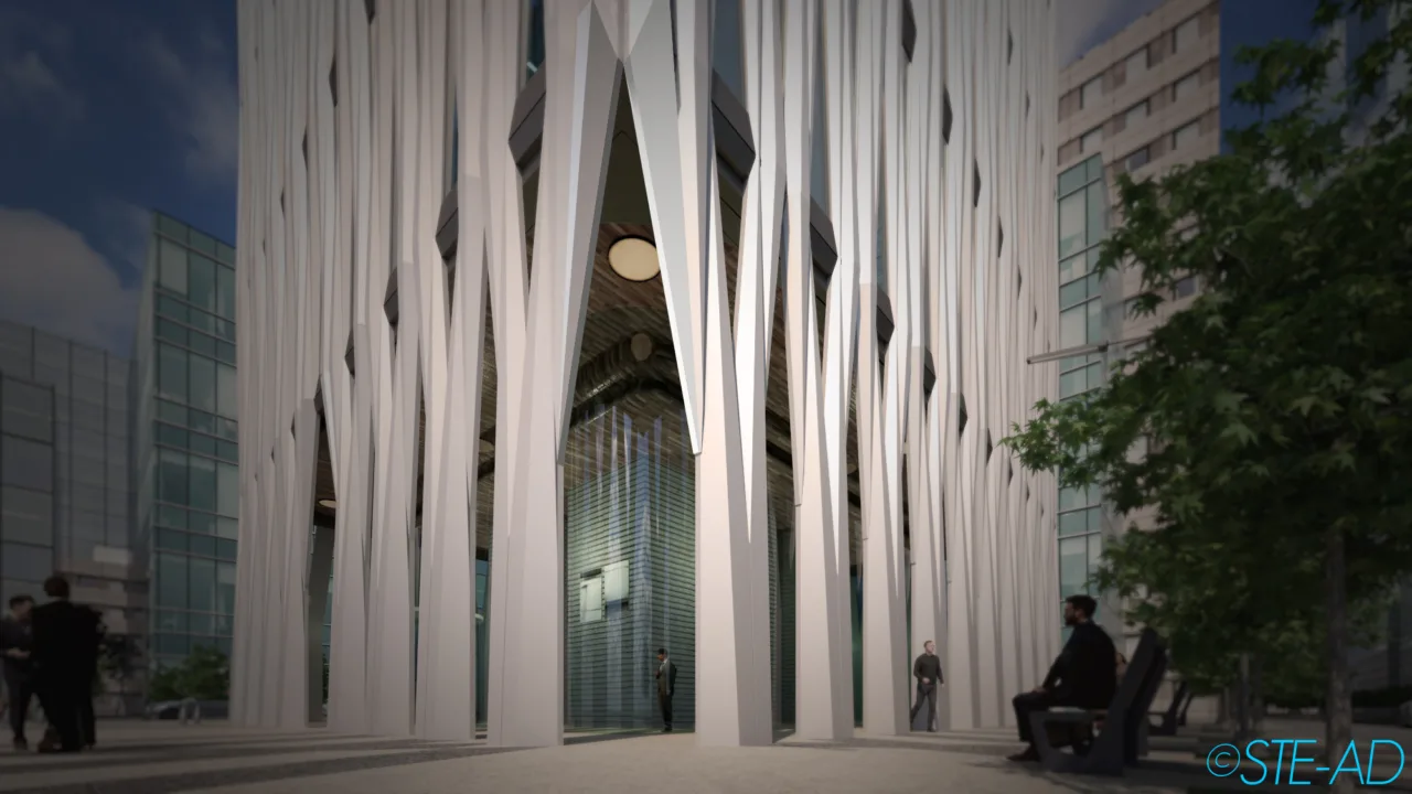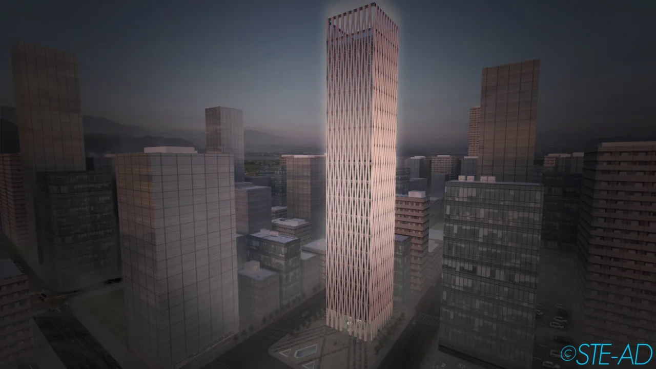 At the heart of Tower ONE – Scheme 1’s design lies its unique structural facade, characteristic of STE-AD‘s approach to design and construction. The facade, composed of two main repeating modules made from photocatalytic self-cleaning concrete, eliminates the need for internal columns, creating expansive, uninterrupted spaces that enhance the building’s aesthetic appeal and functionality.