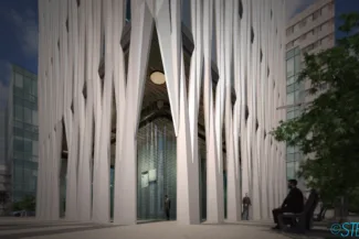 The main structural elements of the exterior are the opaque ‘columns’ that zig-zag up the facade. These elements are comprised of white self-cleaning concrete – or photocatalytic concrete – that uses a titanium dioxide admixture to the concrete.