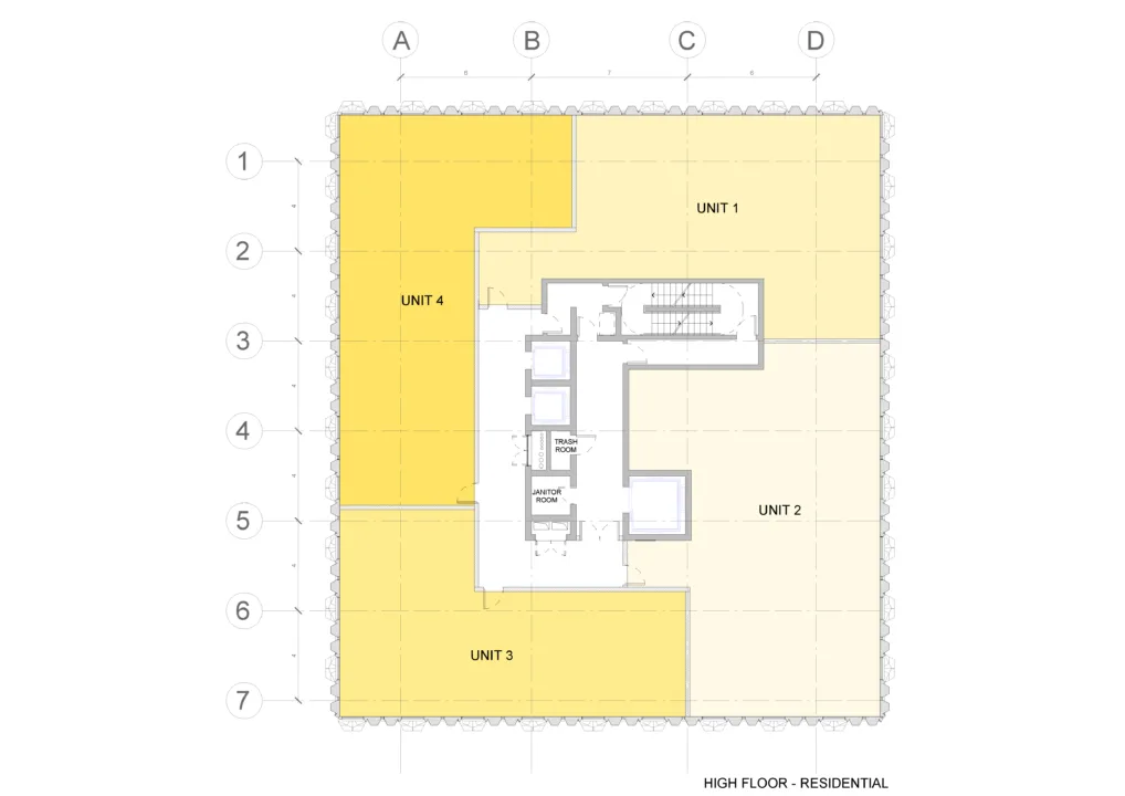 Tower ONE is a proposal for a Mid-Rise mixed-use development. The design of the tower uses the structural facade to avoid columns floating in the space and to reduce solar heat gain.