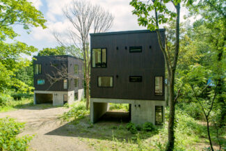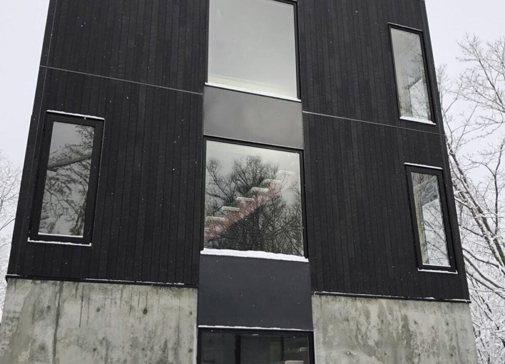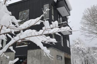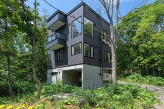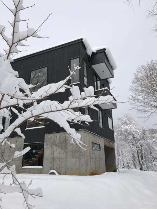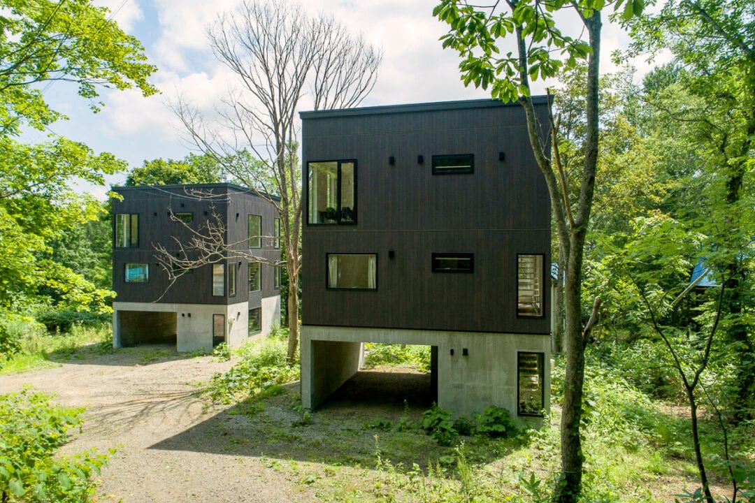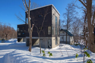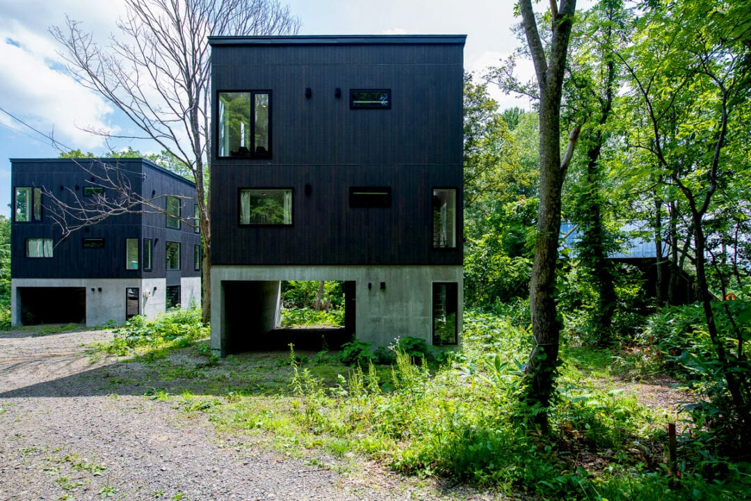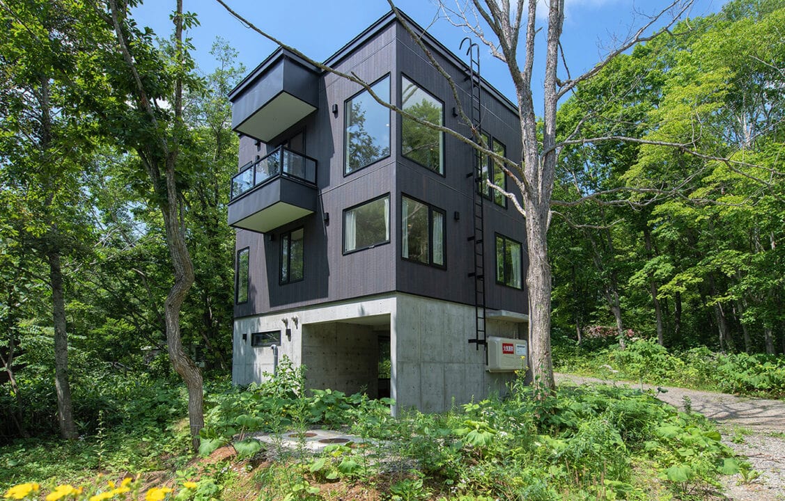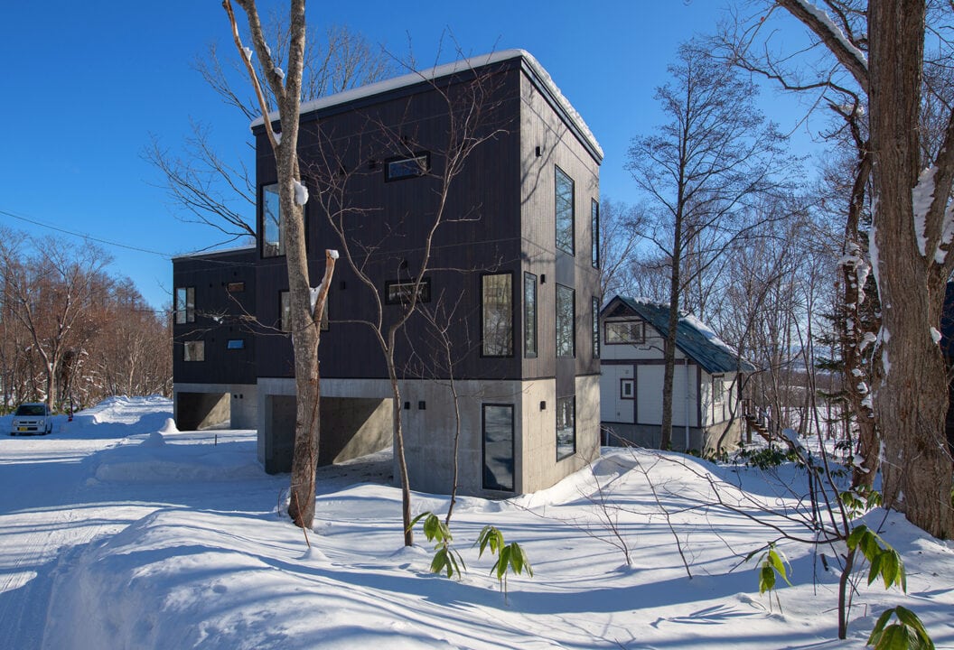 Yuki No Taki 2 utilizes black panel cladding, a nod to shou sugi ban (焼杉板) , the Japanese technique of charring wood, in a cost effective manner.